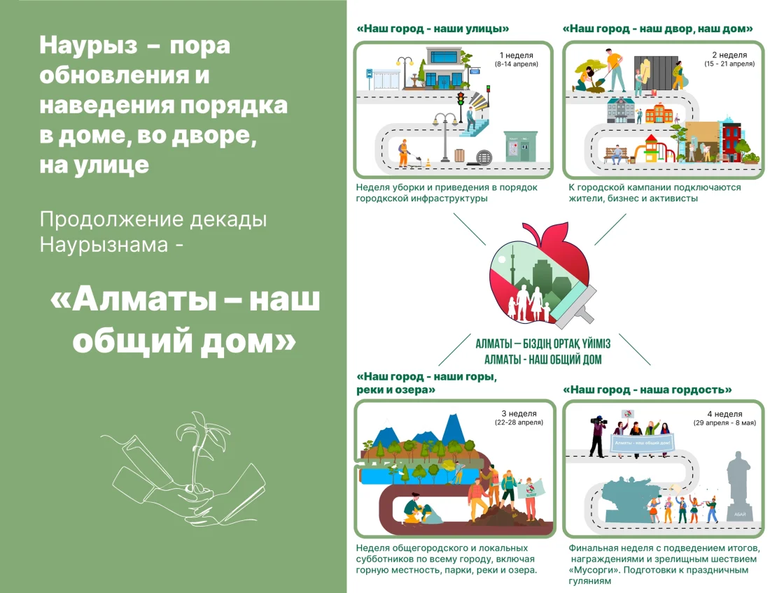 Кампания «Алматы — наш общий дом» поделена на 4 основных этапа.