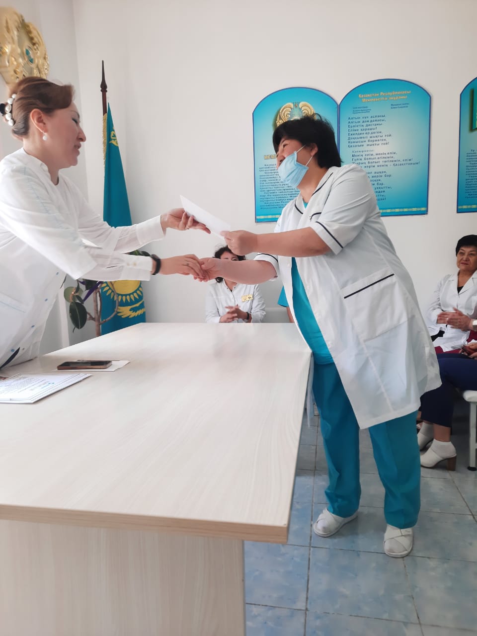 В этом году ввиду ежегодной традиции медсестра и медбратья ГБ Алатау так же не остались в стороне. Были отмечены самые лучшие сотрудники и награждены благодарственными письмами и грамотами.